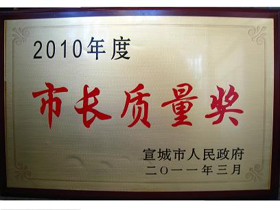 3月29日上午,全市工业发展暨招商引资大会上,黄山ballbet贝博公司获2010年度全市工业企业“综合实力20强”荣誉称号,同时,喜获2010年度(首届)宣城市“市长质量奖”。