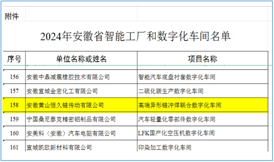 近日,安徽省工信厅正式公布了2024年安徽省智能工厂和数字化车间名单,黄山ballbet贝博高端异形链冲焊联合数字化车间入选榜单。