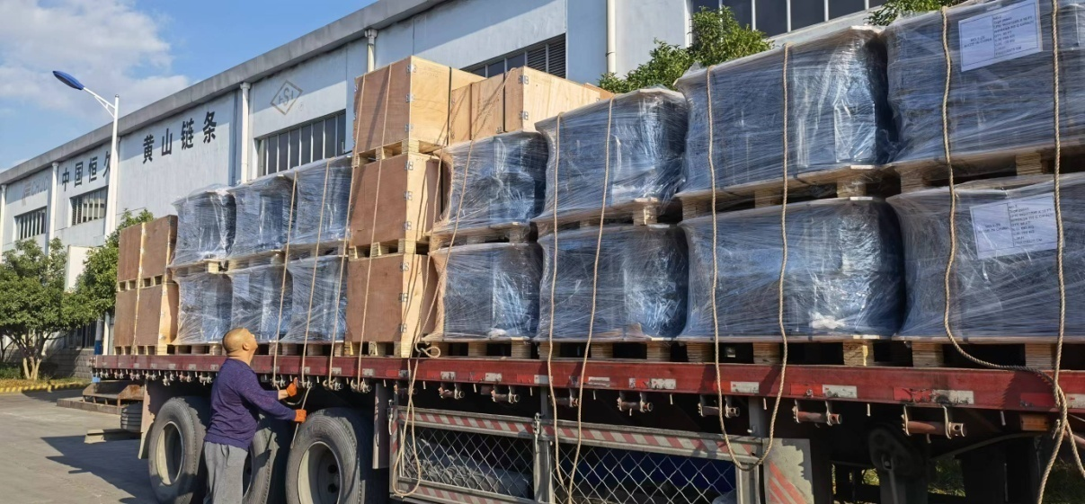 111日,黄山ballbet贝博装配车间内,机器轰鸣,生产一派繁忙,生产线高速运转,工人们正在紧张有序赶制订单。车间外,大货车满载链条,正整装待发,日发货量70多吨,货值120多万元。