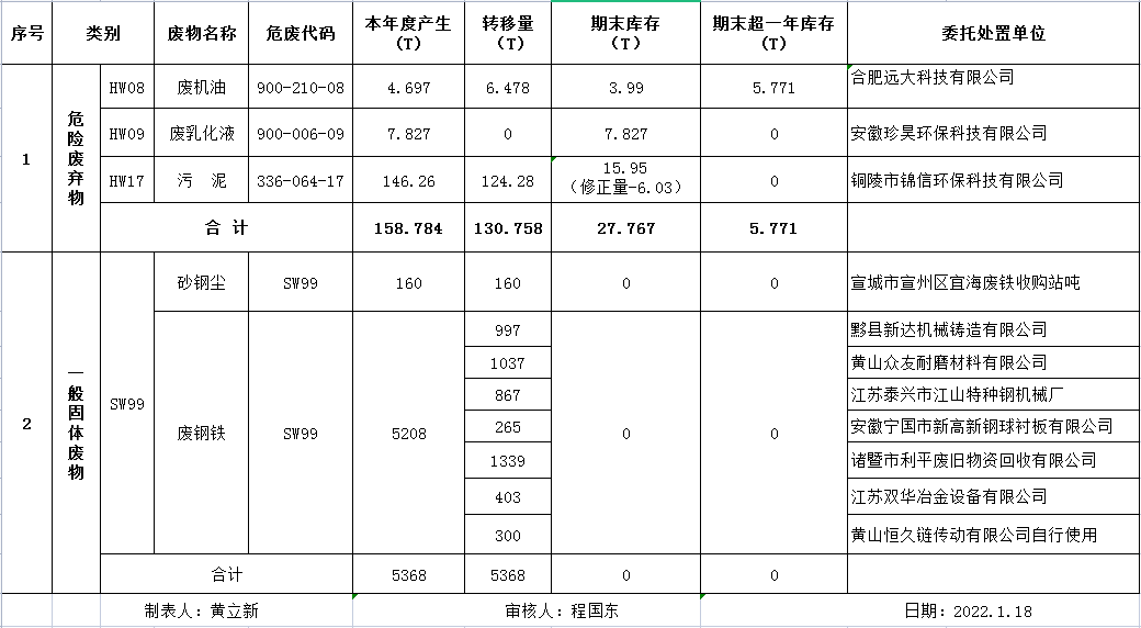 安徽黄山ballbet贝博链传动有限公司 2021年度固体废物污染防治信息 - 安徽黄山ballbet贝博链传动有限公司
