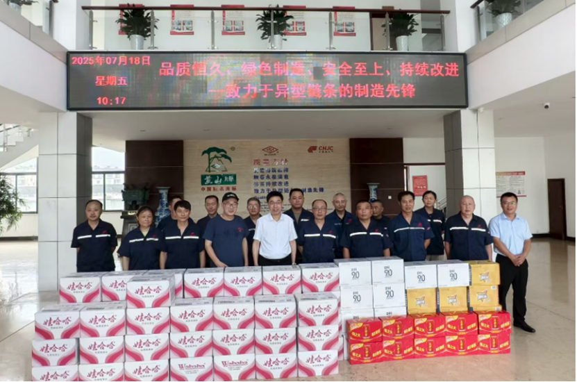 盛夏酷暑,热浪袭人,2025年7月18日上午10:20分,绩溪县县委副书记、县长卢东林带队,携经开区管委会、总工会相关负责人,带着娃哈哈矿泉水、电解酸性水、王老吉和红茶等防暑降温物资,深入安徽黄山ballbet贝博链传动有限公司开展高温慰问活动。